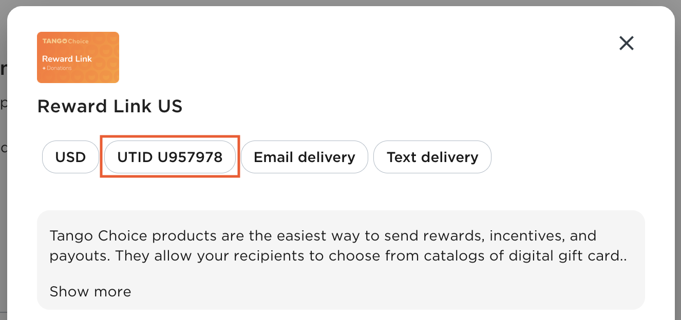To use the tango Liquid filter, you will need to obtain the reward ID (called UTID) in the Tango portal: